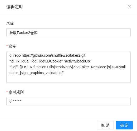 # 进入面板 # 拉取Faker2仓库 ql repo https://github.com/shufflewzc/faker2.git "jd_|jx_|gua_|jddj_|getJDCookie" "activity|backUp" "^jd[^_]|USER|function|utils|sendNotify|ZooFaker_Necklace.js|JDJRValidator_|sign_graphics_validate|ql" # 定时 0 * * * *