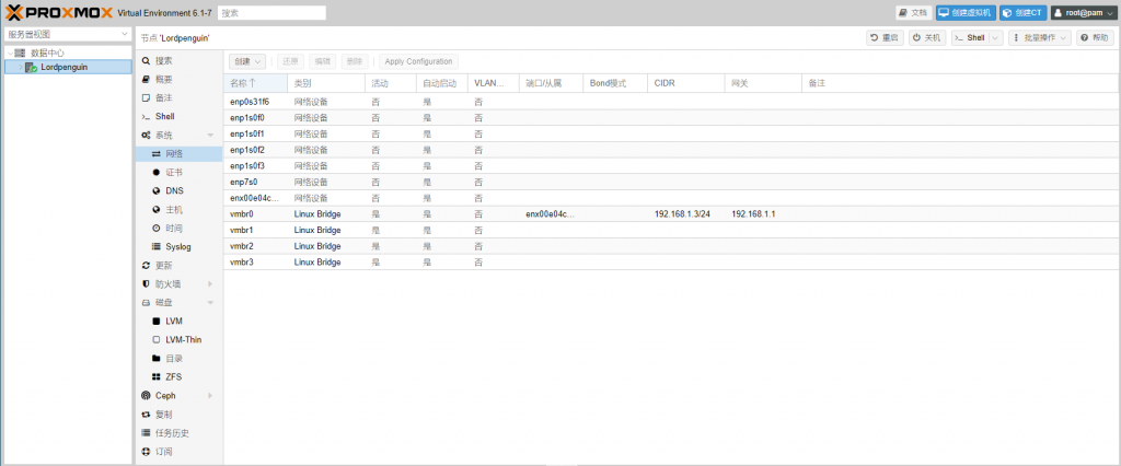 1.PVE安装时我选择了usb网卡作为管理接口,这样就不会收到直通的影响了,以后出问题维护重新插回去也没问题的